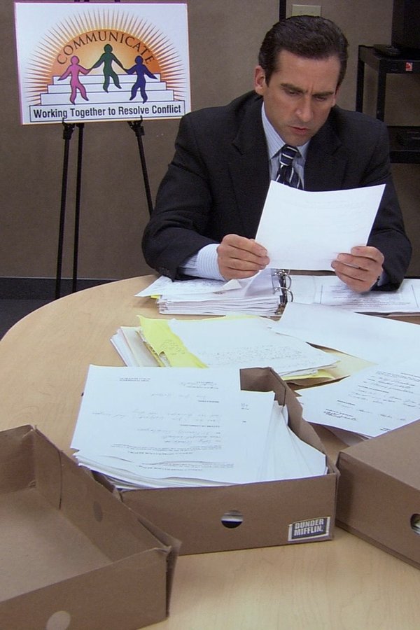 Çalışanlar, Michael ile iş verimliliklerinin değerlendirilmesi için biraraya geldiklerinde, Michael'ın aklındaki tek şey o gün patronunun kendisini değerlendireceği toplantıdır.